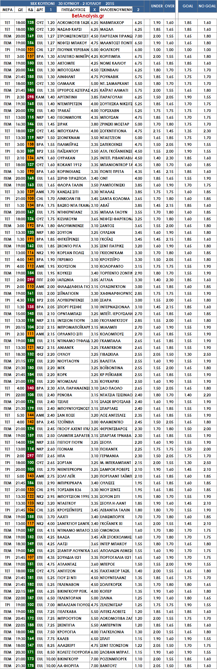 - Σε στατιστικά live αγώνων