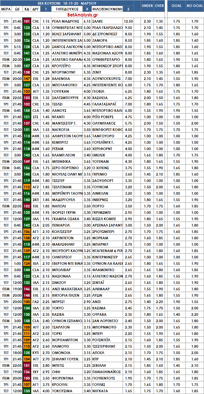 Στοιχηματική εκπομπή ΠΕΜΠΤΗ 20/3 στις 23:00