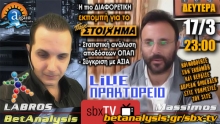 Στοιχηματική εκπομπή ΔΕΥΤΕΡΑ 17/3 στις 23:00